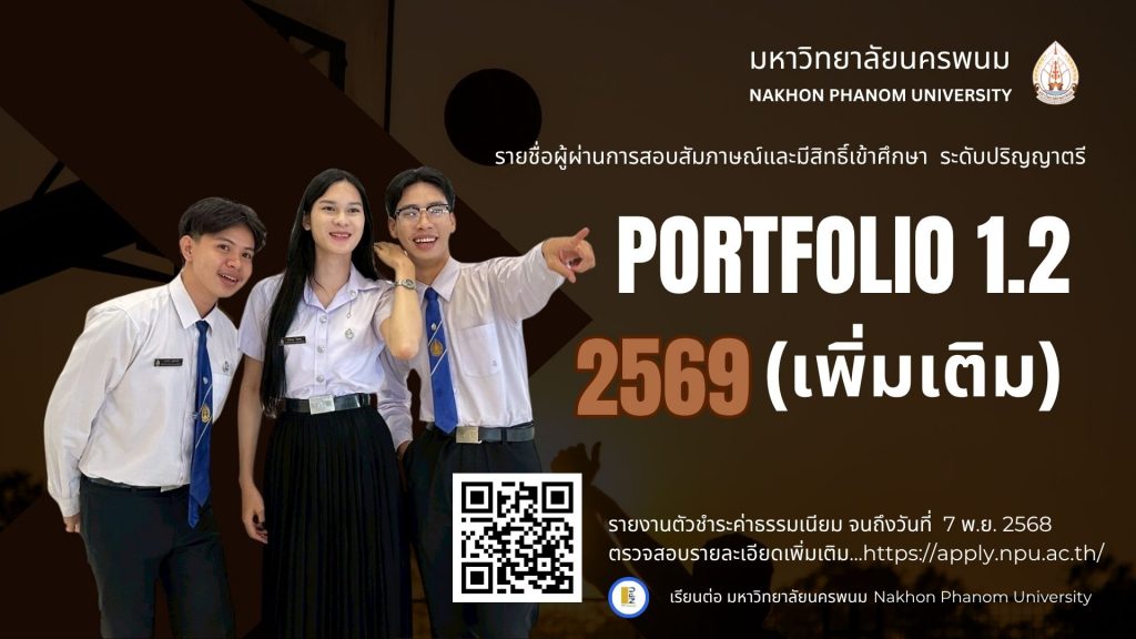 ประกาศรายชื่อผู้ผ่านการสอบสัมภาษณ์และมีสิทธิ์เข้าศึกษา ระดับปริญญาตรี รอบ Portfolio 1.2 ประจำปีการศึกษา 2569 (เพิ่มเติม)By admin admin / 31 ตุลาคม 2568