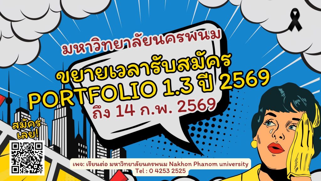 ขยายระยะเวลาการรับสมัครนักศึกษา ระดับปริญญาตรี รอบ Portfolio 1.3 ประจำปีการศึกษา 2569By admin admin / 5 มกราคม 2569