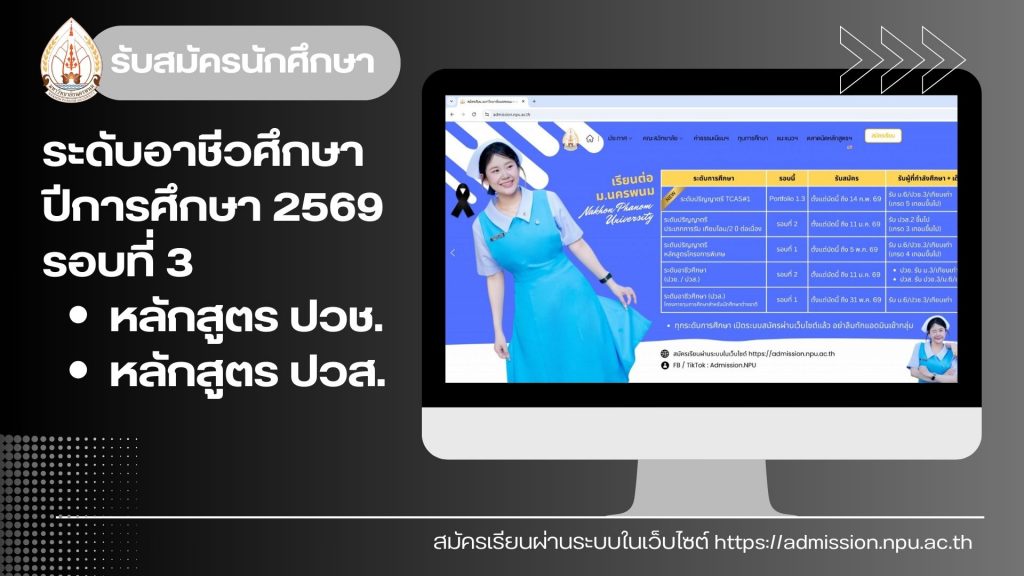 ประกาศรับสมัครบุคคลเข้าศึกษาในระดับอาชีวศึกษา หลักสูตรประกาศนียบัตรวิชาชีพ (ปวช.) และหลักสูตรประกาศนียบัตรวิชาชีพชั้นสูง (ปวส.) (รอบที่ 3) ประจำปีการศึกษา 2569By admin / 9 มกราคม 2569