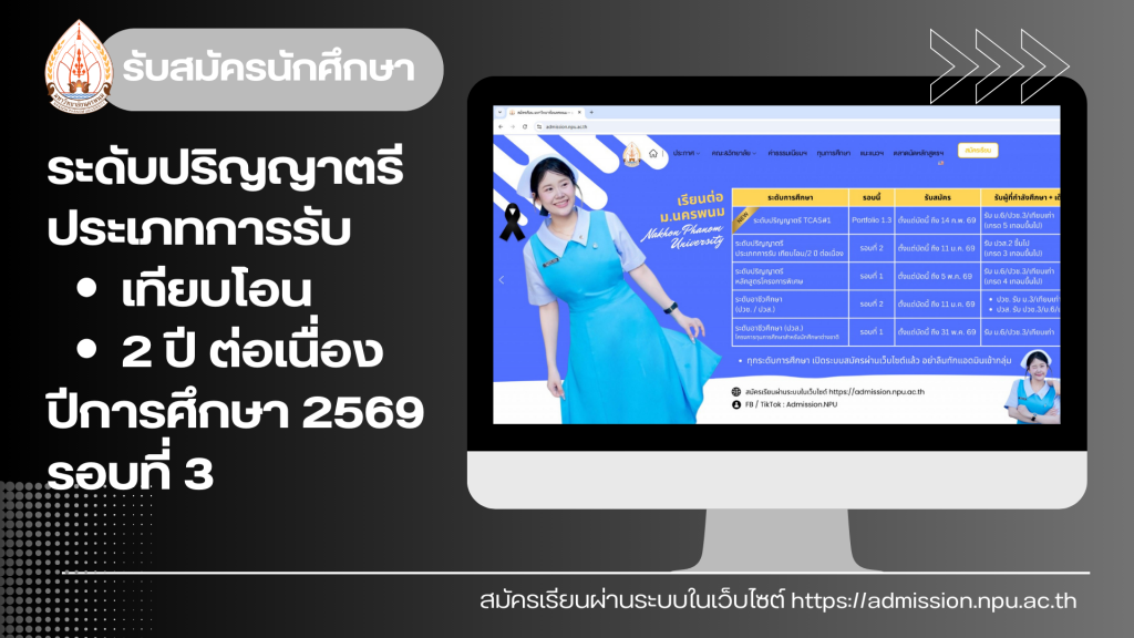 ประกาศรับสมัครบุคคลเข้าศึกษาในระดับปริญญาตรี ประเภทการรับเทียบโอน และ 2 ปี ต่อเนื่อง (รอบที่ 3) ประจำปีการศึกษา 2569By admin / 9 มกราคม 2569