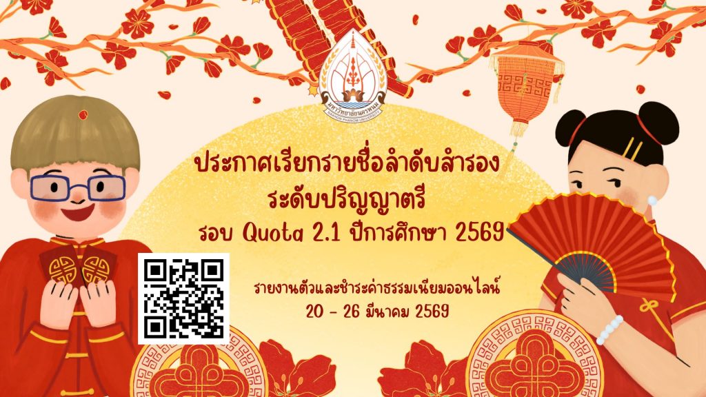 ประกาศเรียกรายชื่อลำดับสำรอง ระดับปริญญาตรี รอบ Quota 2.1 ปีการศึกษา 2569By admin admin / 20 มีนาคม 2569