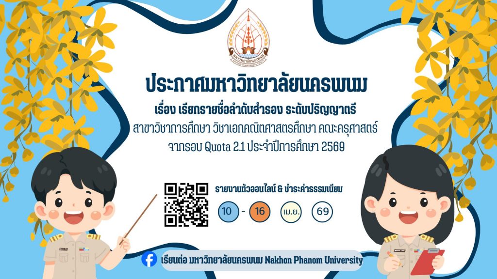 ประกาศเรียกรายชื่อลำดับสำรอง ระดับปริญญาตรี สาขาวิชาการศึกษา วิชาเอกคณิตศาสตรศึกษา คณะครุศาสตร์ จากรอบ Quota 2.1 ประจำปีการศึกษา 2569By admin admin / 8 เมษายน 2569